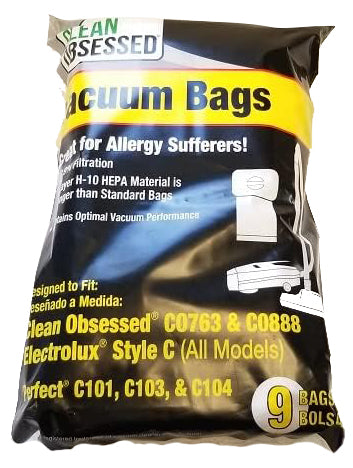 CLEAN OBSESSED CO763/CO888/LUX CANISTER HEPA VACUUM BAGS, PACK OF 9